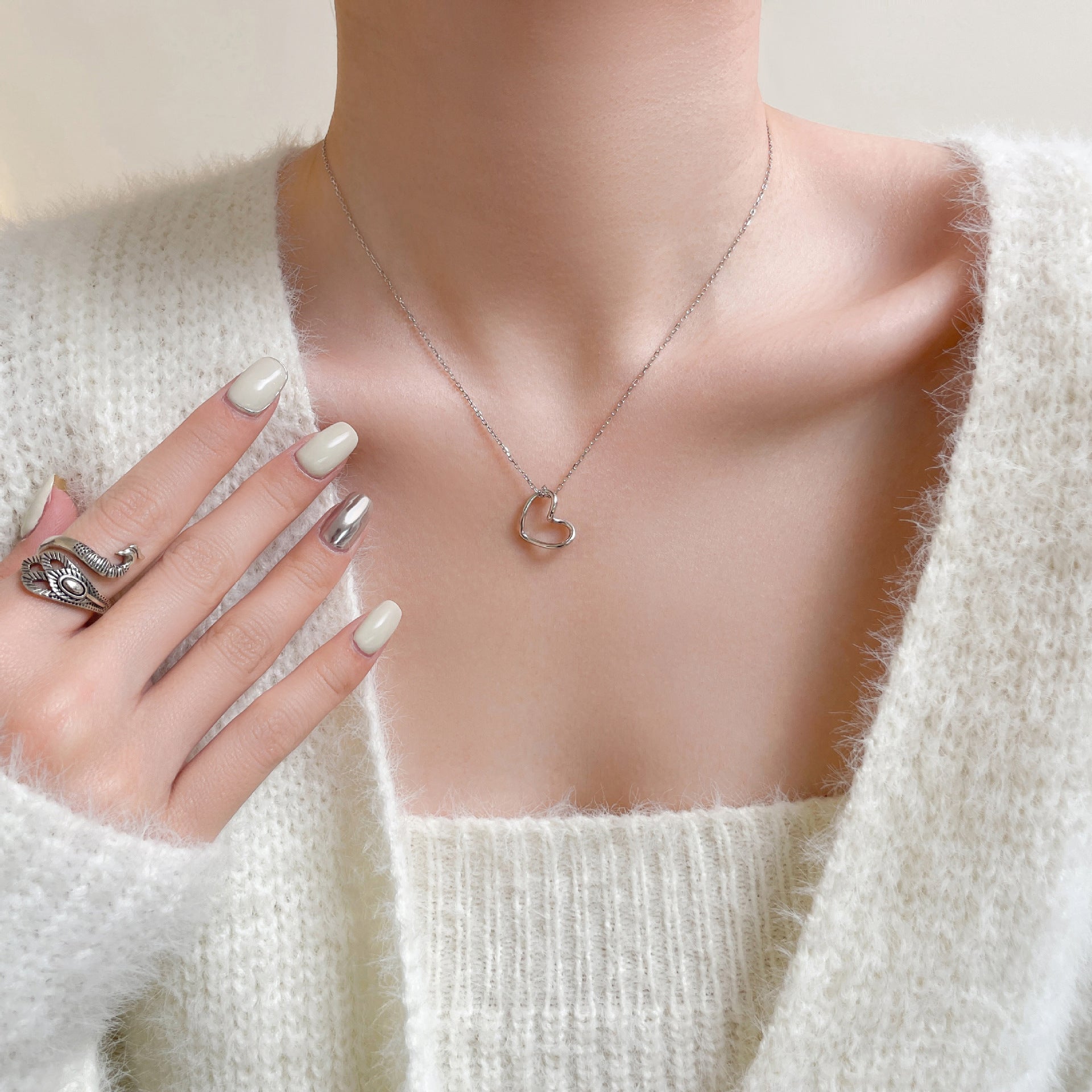 925 Sliver Heart Shaped Geometric Necklace Jewelry Women's Clavicle Chain Valentine's Mothers Day Gift